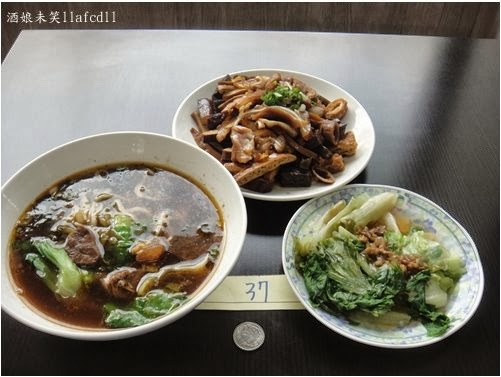 左邊是牛肉麵(80元),右邊是燙青菜(30元),上方的滷味是125元~~