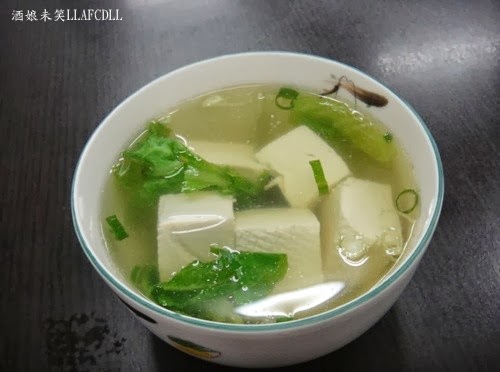 青菜豆腐湯喝起來味道清淡,熱湯挺暖身的~~