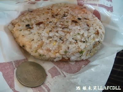 飯糰稍油,飯糰裡面攙有似三島香鬆的配料.