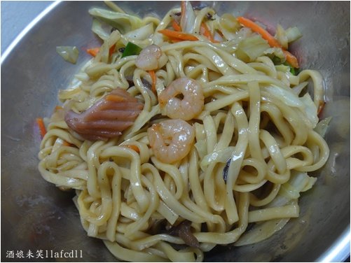 裡面有蝦仁,花枝,魷魚,高麗菜,紅蘿蔔,黑木耳,麵條,