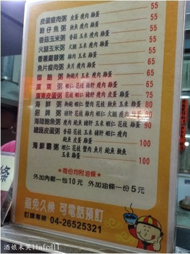 店家的菜單有將每種粥用的食材都寫出來,