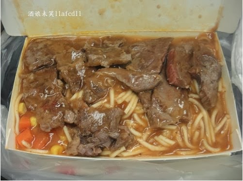 裡面有麵條,紅蘿蔔,玉米,牛排,蘑菇醬~~