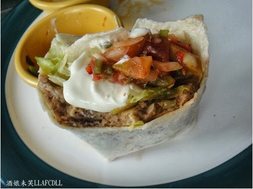 墨西哥捲餅裡面有生菜,莎莎醬,