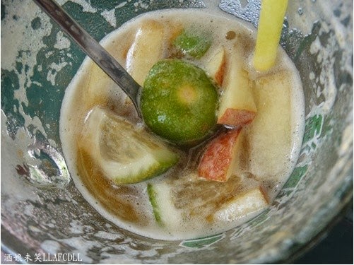 店家的水果茶是用啤酒杯裝,很豪氣.