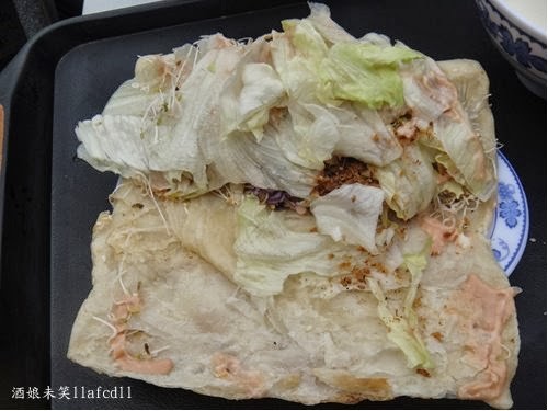 裡面的苜蓿芽與生菜沒有攙很多千島醬,吃起來卻很多汁,與酥脆的燒餅搭配,非常地好吃!