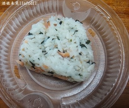 單吃鮭魚海帶芽飯糰,味道很鹹,