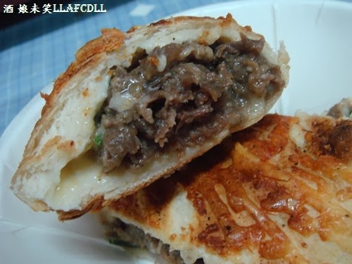 裡面有大塊的牛肉、蔥、起司,