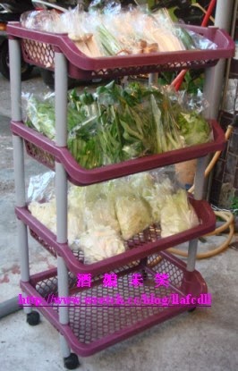 大家的籃子都擠在架子上方,完全看不出誰先誰後.