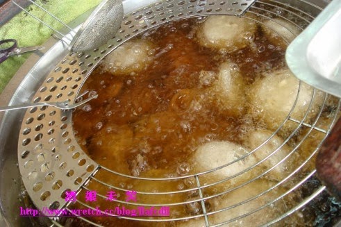 在油鍋裡面翻滾的肉圓.