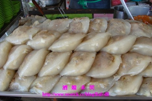 攤子上放滿大大圓圓的未炸肉圓.