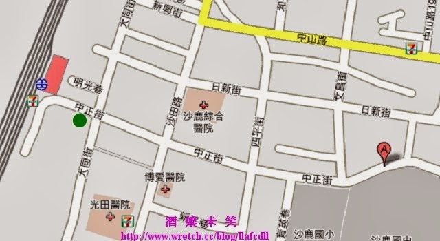 地址: 台中市沙鹿鎮中正街,大同街交叉口(沙鹿火車站前)(綠色圈圈處).