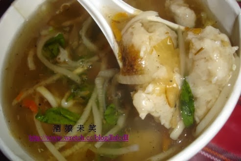 尤其,配上他自製的羹湯,(裡面有脆筍,胡蘿蔔,香菜),真的很特別.