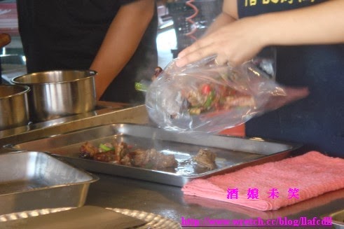 炒好後,店員就會將鴨骨放進袋子裡面.