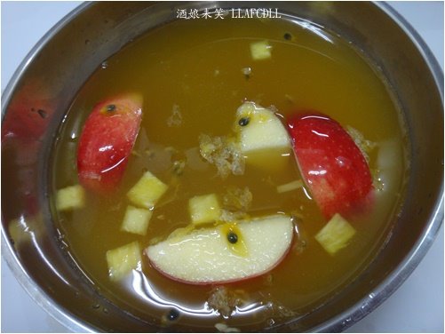裡面有百香果,鳳梨,蘋果,柳橙.