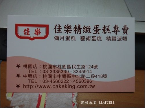 店家的名片 =================================== 店名: [桃園桃園] 佳樂精緻蛋糕專賣店(原味波士頓派/巧克力波士頓派/草莓波士頓派) 地址: 桃園市桃園區民生路124號 電話:03-333-5339、334-5914 營業時間: 8:00 - 22:00 官方臉書: 佳樂精緻蛋糕專賣店
