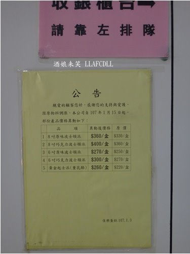 店家的草莓波士頓派香甜又好吃,蠻值得一試的. ^^ 佳樂精緻蛋糕專賣店總店在桃園 中壢店倒也是開了挺長的一段時間, 另外,在新竹福華,桃園高鐵站,新竹高鐵站也都有櫃. 當天到訪的是桃園站,在翰品酒店的斜對面 店家的店面還蠻大的 透過店面的玻璃櫃,就可以看見很多漂亮的蛋糕. 店家是今年年初有調整過價錢 店家的冷藏櫃滿滿都是蛋糕, 店家也有販售單片波士頓派 草莓波士頓派為6吋$390 草莓波士頓派為8吋的價格是680元 草莓乳酪派約莫5吋 $460 草莓波士頓派(6吋$390) 草莓波士頓派的側面 草莓波士頓派有附刀子 草莓波士頓最上面是奶粉,小心食用,別吃得滿身都是 裡面有兩層草莓,鮮奶油 蛋糕體新鮮鬆軟,單吃不會過甜, 鮮奶油還蠻爽口的,建議冰冰的吃,會更清爽 草莓超香的,鮮甜多汁, 搭配鮮奶油,草莓一起入口,是非常好吃的草莓蛋糕 當天也有購賣單片的原味波士頓派,巧克力波士頓派. 只有原味,巧克力派有做切片, 其他口味的波士頓派沒有做單片銷售 原味波士頓派(40元) 最上面是奶粉,小心食用,別吃得滿身都是 裡面兩層是鮮奶油, 蛋糕體新鮮鬆軟,單吃不會過甜, 鮮奶油還蠻爽口的,建議冰冰的吃,會更清爽 巧克力波士頓派(45元) 巧克力波士頓派是巧克力蛋糕體加上巧克力餡 上面一樣灑有奶粉,小心食用,別吃得滿身都是 蛋糕體新鮮鬆軟,單吃不會過苦, 巧克力餡非常濃郁,整體吃起來,比原味出色許多 不過,後來我有吃到整圈完整的波士頓派, 就覺得單片的波士頓派新鮮度較差,比較不推買單片的. 草莓波士頓派還蠻好吃的,感天再去買草莓乳酪派試試. P.S. 若是想要買草莓系列的產品,請先打電話詢問,訂購,以免撲空囉.