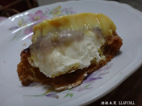 一口咬下布丁,芋泥,卡士達醬的泡芙,真是幸福.