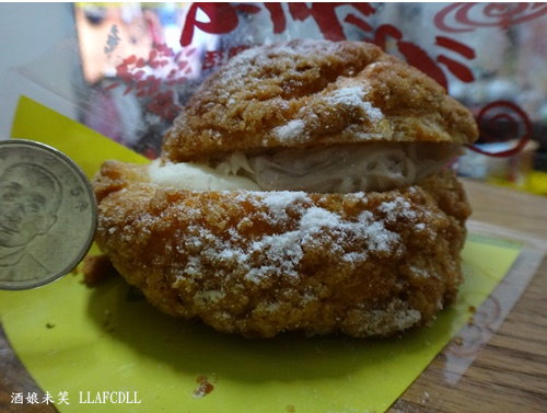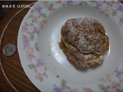 外皮酥酥的,上面灑有糖粉,單吃有點小甜.