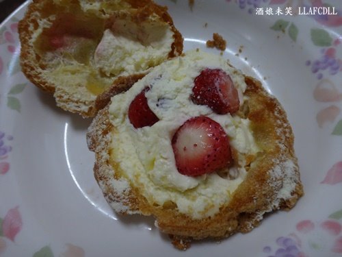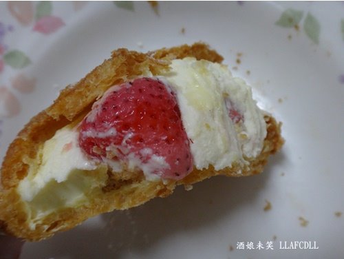 草莓泡芙(35元)的外皮酥酥的,外面有撒上糖粉,單吃有點小甜.