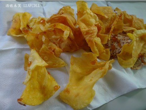 地瓜片容易對折,芋頭酥倒是都一片片地平整風貌