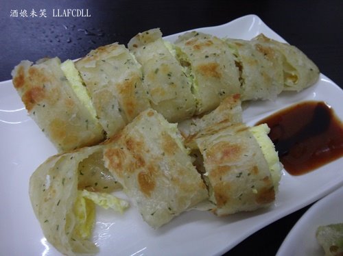 捲餅煎得酥酥的,裡面的煎蛋卻很厚實,蛋味十足,單吃就蠻好吃的.