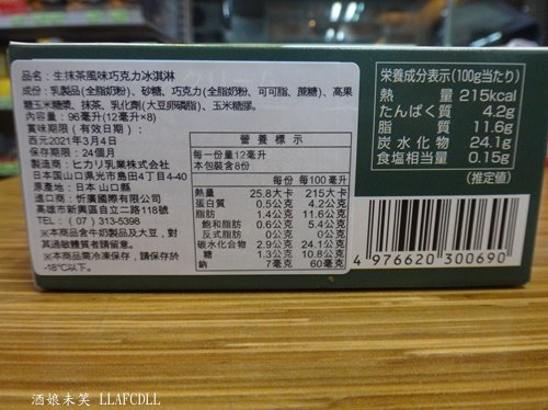 成份:乳製品、砂糖、巧克力、高粱玉米糖漿、抹茶、乳化劑、玉米糖漿