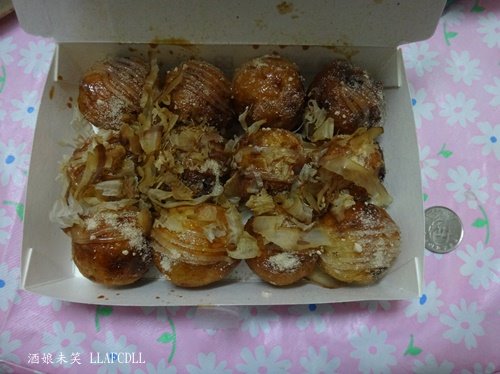 這一家章魚燒皮香酥內軟Q,是非常好吃的章魚燒. 在龍清書局對面,前陣子新開一間墨醬章魚燒, 當天是剛好路過,就買來試試.