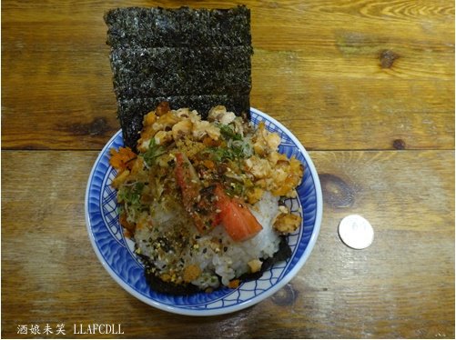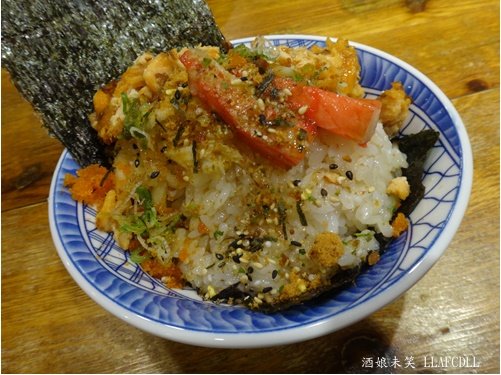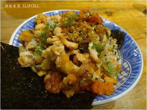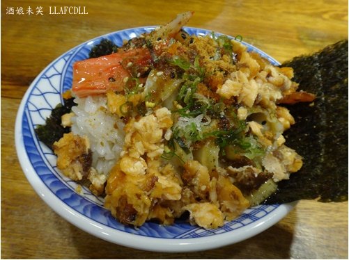 上面是煎碎鮭魚,口感香酥,