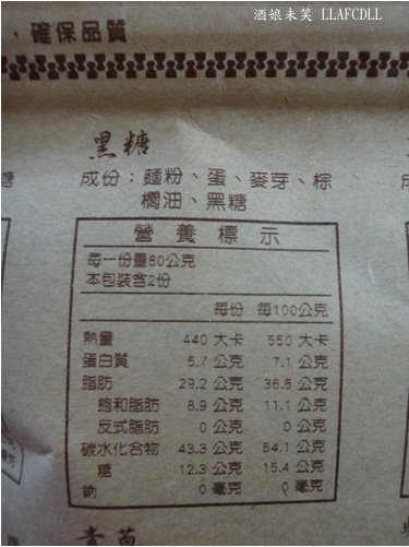 成分:麵粉、蛋、麥芽、黑糖、棕櫚油重量:160公克±5公克