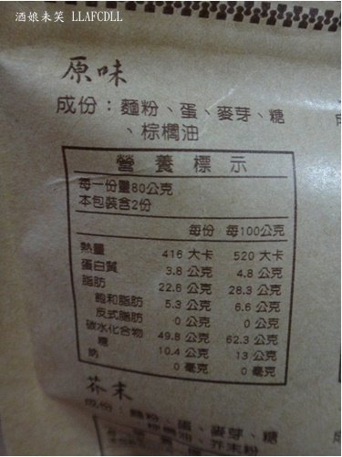 成分:麵粉、蛋、麥芽、糖、棕櫚油