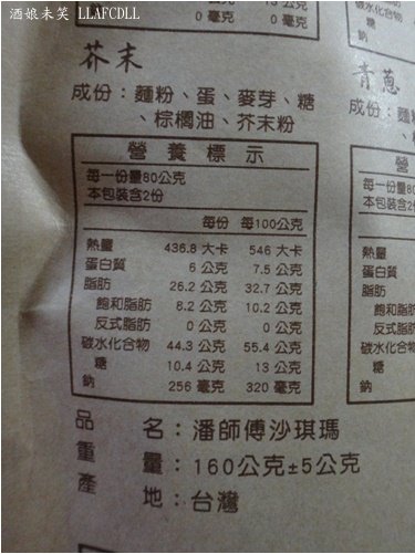 成分:麵粉、蛋、麥芽、黑糖、棕櫚油、芥末粉