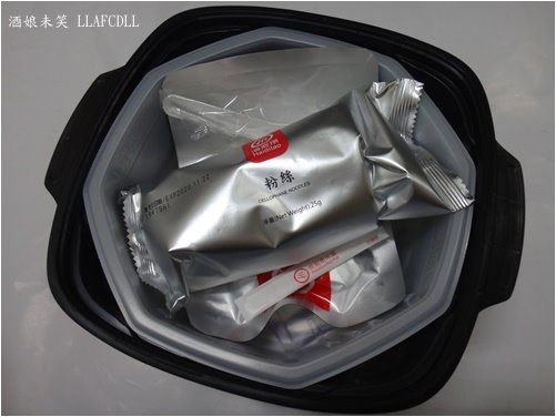 打開塑膠盒後,可以看見有個小的透明塑膠盒,裝著食材